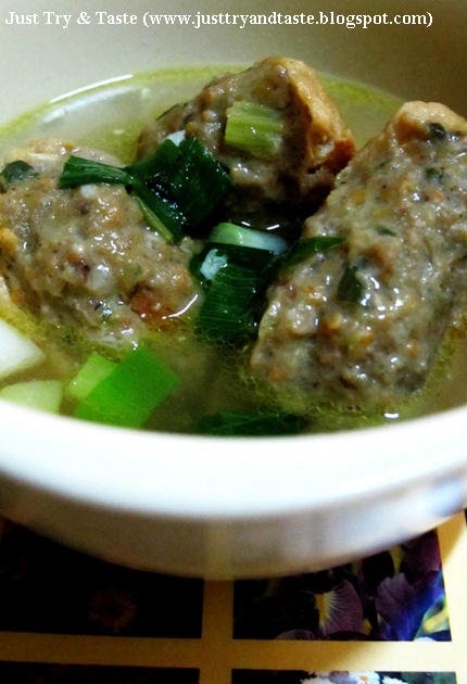 Aroma sedapnya bawang terasa mendominasi kuah tahu bakso nikmat ini.